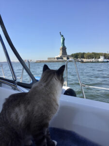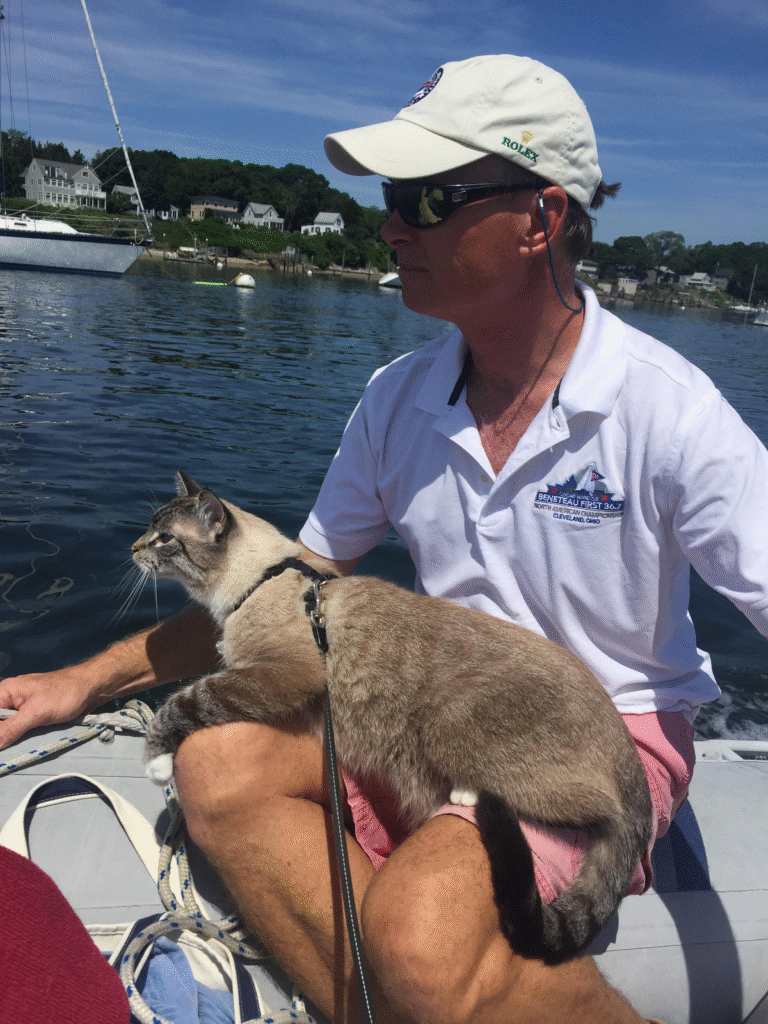 Years ago, when Gary and I used to cruise in the 1000 Islands in the St. Lawrence River, I have a vivid recollection of seeing an older couple manhandling a pair of very large, long (and bushy) haired collies into their dinghy to take them ashore. I have to say we were both pretty gobsmacked about handling such large dogs in such a small space for even a short amount of time, not to mention the hair and hassle of getting them to shore for walks. But now that we are full-time cruisers (Maine to the Bahamas and everything in between) with our cat, Hobie, aboard, I have to say that I can’t imagine not having him on board with us as we journey. This is not to say that having a pet (or pets) aboard is something that can be taken into consideration lightly; there are many factors that can cause headaches if not planned for properly. The following is just a few suggestions on how you can make your and your pet’s life better on board.