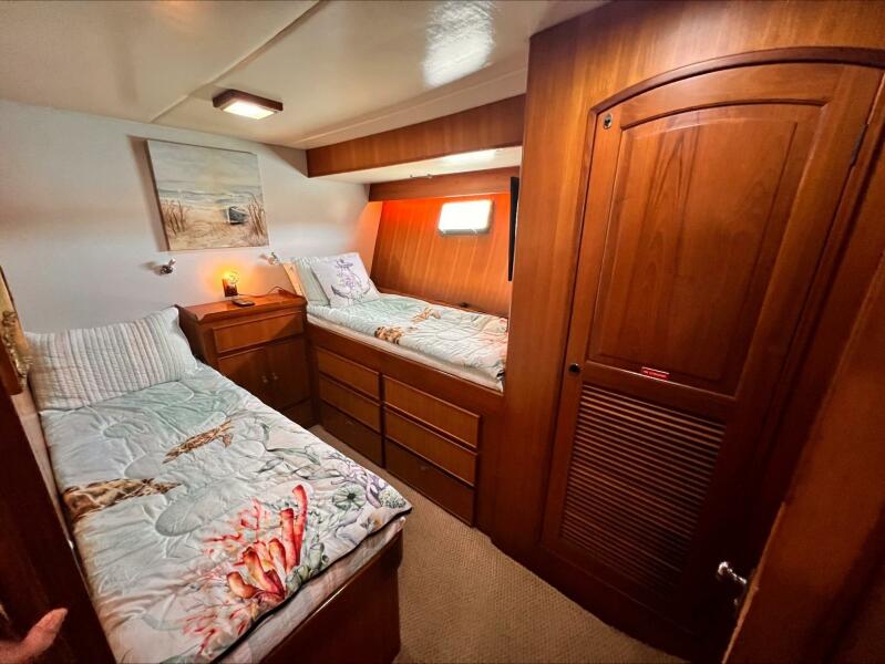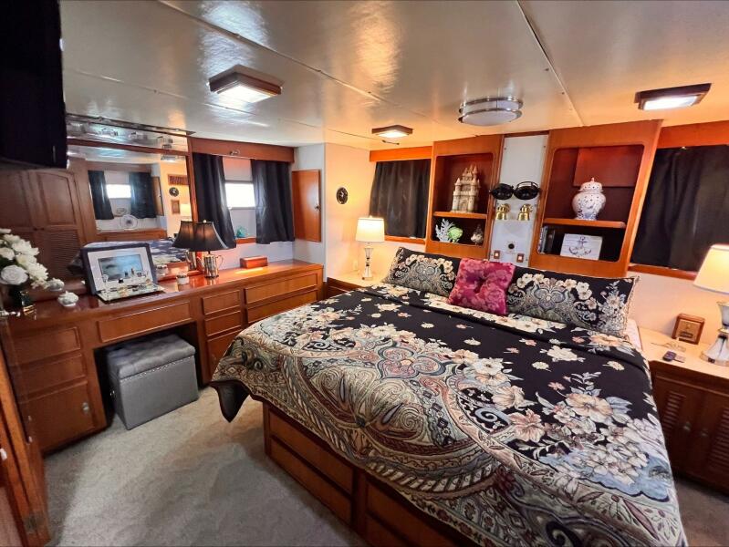 - Down below, there are four staterooms that offer plenty of space for family or guests. The master stateroom has a king-size bed and lots of storage, and the other cabins are well laid out and practical.