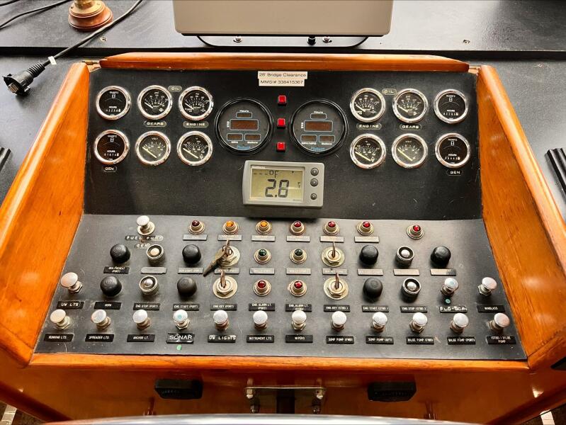 - Two multifunction displays installed on flybridge with remote monitors installed in pilot house