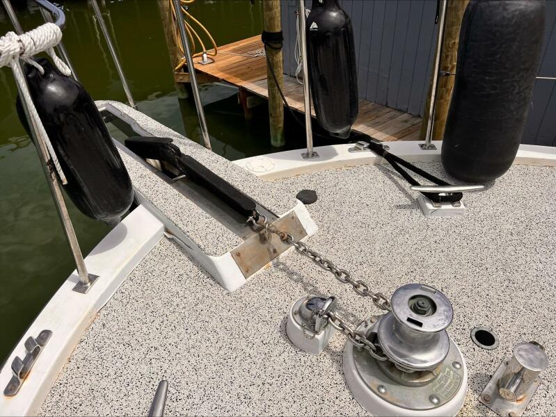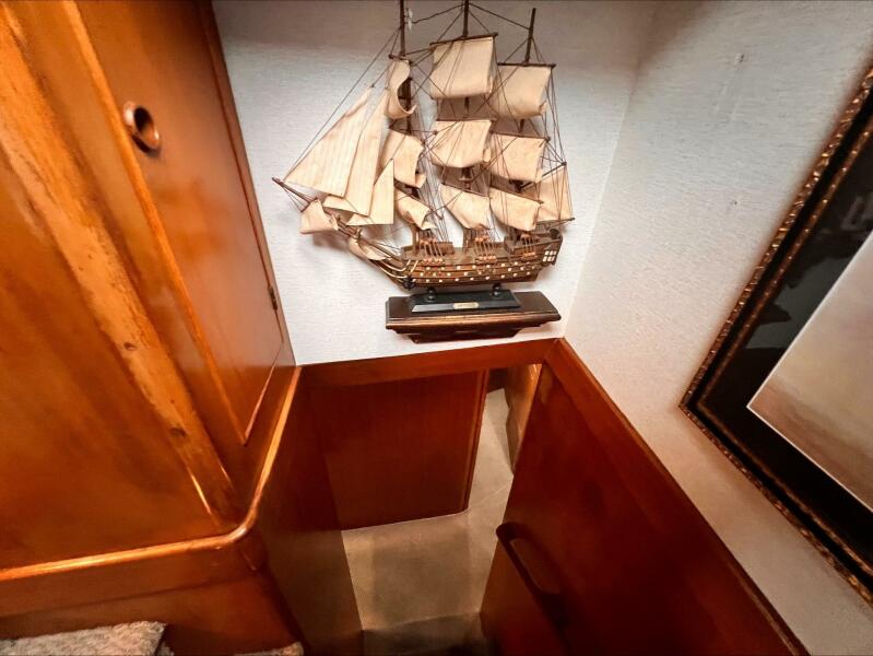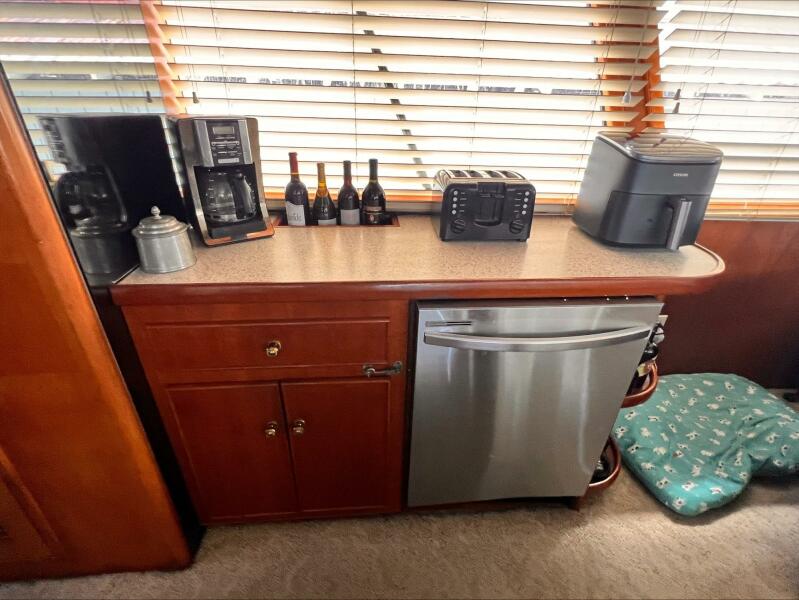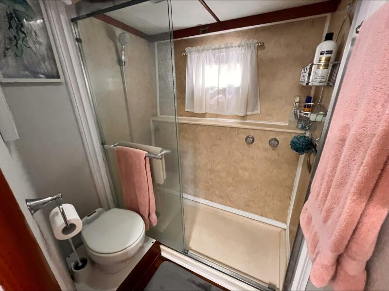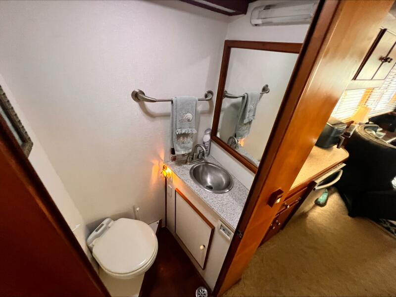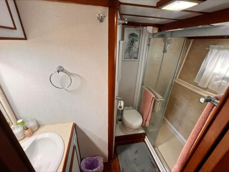 The galley is located on the port side and is very well designed and so well equipped. Features include all newer appliances, a complete bar and dinning area, pressurized hot & cold water system, hot water heater, and lots of room for storage. To the starboard side of the galley there is a day head.