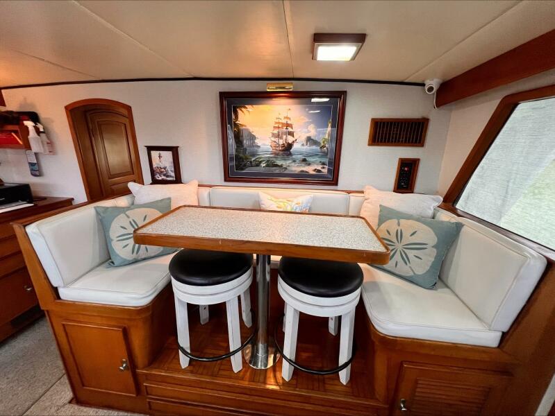 - The living space on this boat is roomy, comfortable, and great for spending extended time aboard. The main salon has a nice open feel with updated finishes, making it a relaxing spot to hang out. With the galley up, it’s easy to cook and still be part of the action.