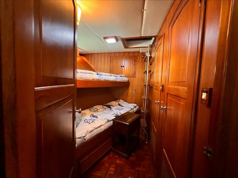 - Twin 400hp Detroit Diesel 8V92 naturals (Fuel burn @ 7.5 kt cruise 1mpg, WOT 13gph)