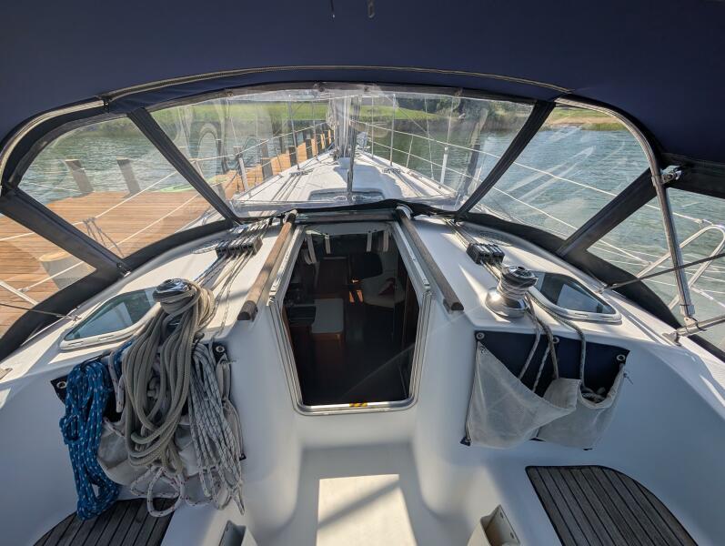 Renaissance is a very well equipped and beautifully maintained example of the popular Beneteau 361! This is a completely turn-key boat, ready to cruise the Chesapeake Bay or set sail to the Caribbean for the winter and enjou as a live aboard. Renaissance is outfitted with many long-range cruising features; AIS, granny bars, stack pack, autohelm, solar array, as well as dockside comforts like reverse-cycle air conditioning. Below deck, the interior is made out of rich cherry wood, and contrasts nicely with the white upholstery. The Yanmar 3GM30F inboard diesel engine has less than 1,600 hours, and has been maintained meticulously. This boat is the gateway you have been looking for to your own floating Renaissance.