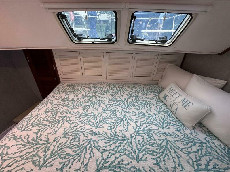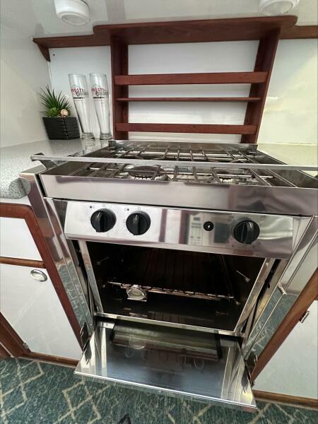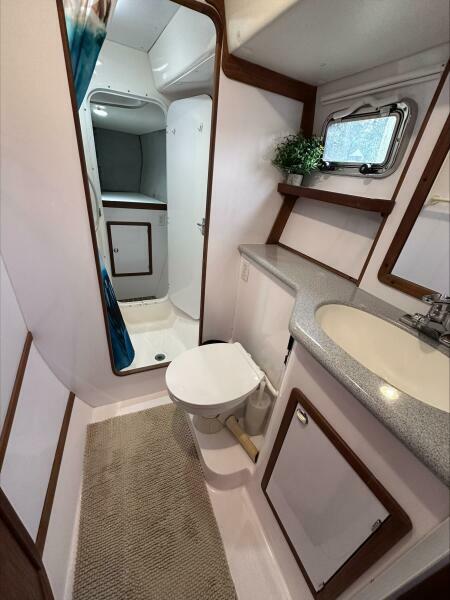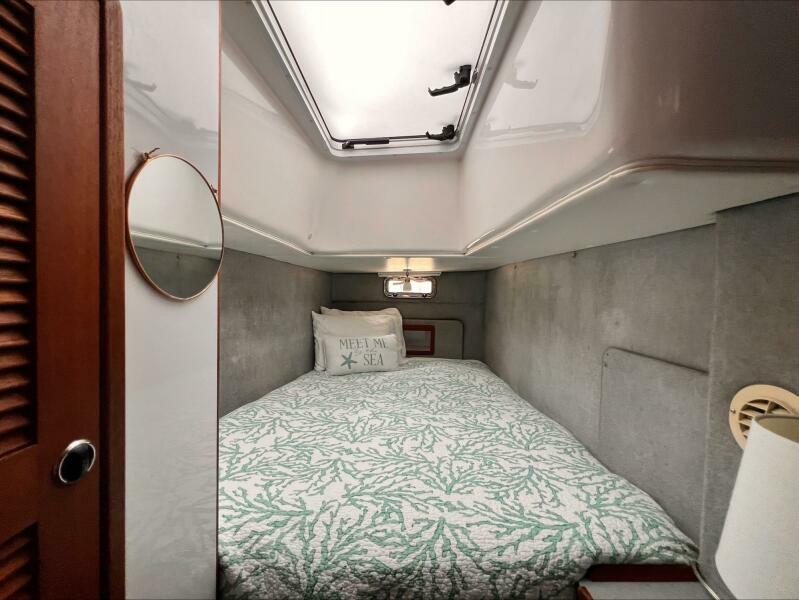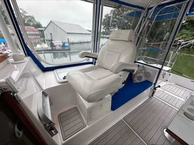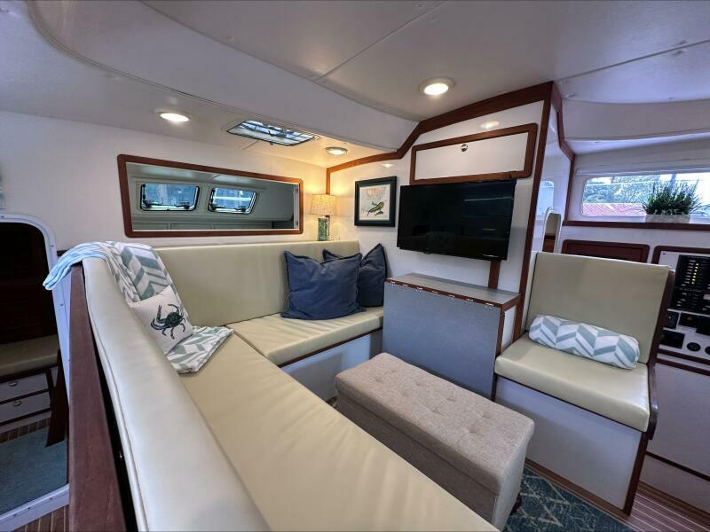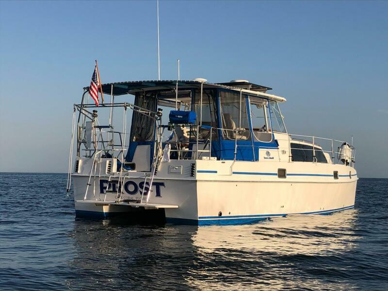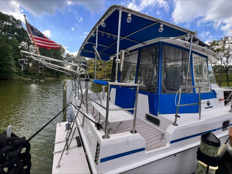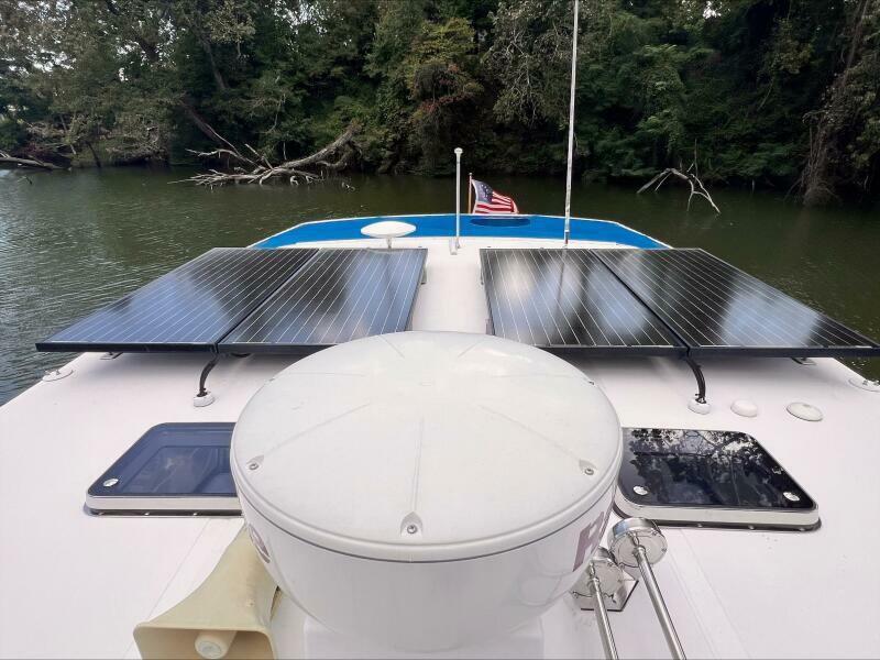 “Prost” is a proven cruising platform that has spent extensive time in the Chesapeake Bay down to the Bahamas. Her shallow draft (2′ 10″) gives her an edge navigating the ICW and around the Keys. With slightly over 2mpg at an 8kt cruise the fuel range is easily over 600 miles. The solar capacity of 660w allows for continuous charging of all batteries allowing plenty of off grid living.