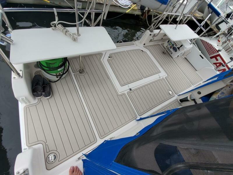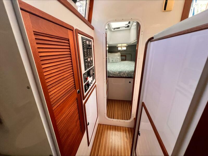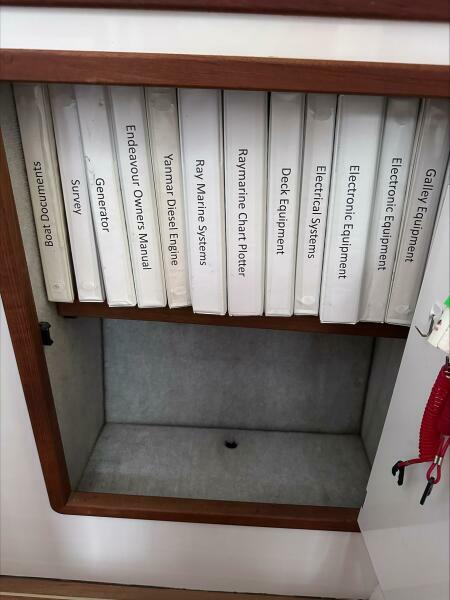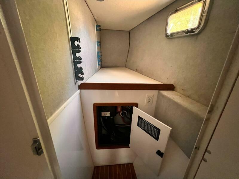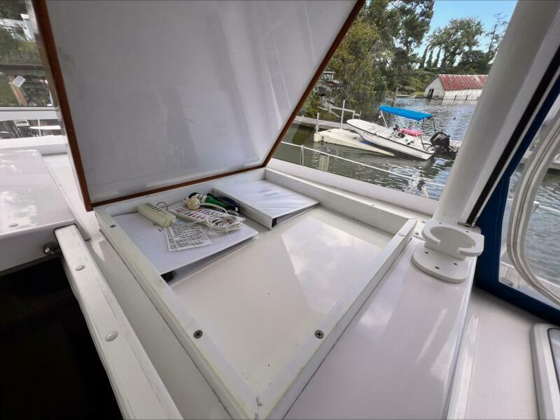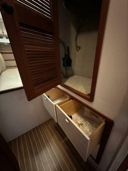 - Large lazerette in cockpit with access to fuel filters and house batteries
