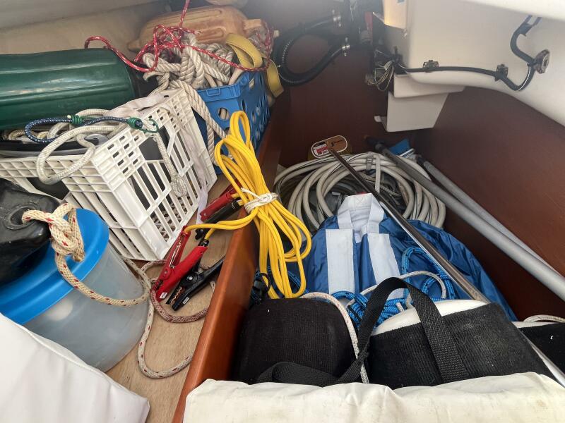 • Storage to starboard and beneath V-berth w/ a large hatch for ventilation.