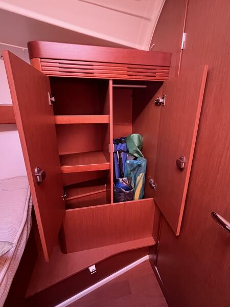 • Port access to the large aft cabin w/ queen bunk, 3 opening ports and storage space
