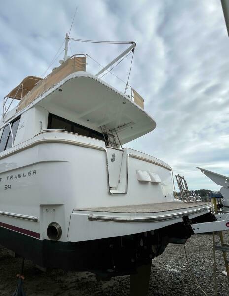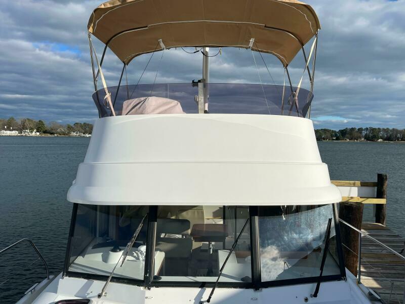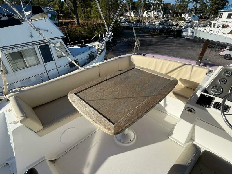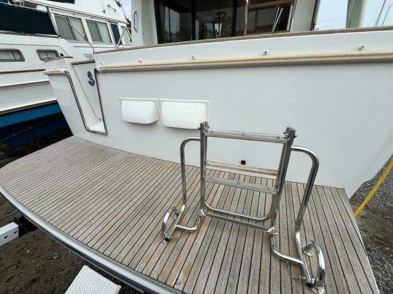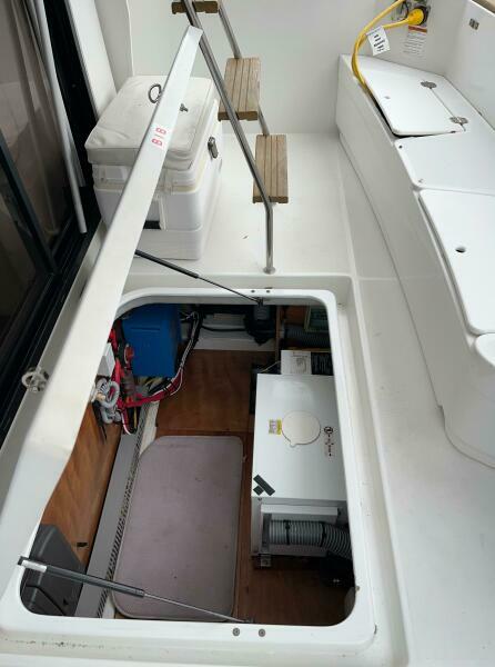 - Access to flybridge via solid fiberglass hatch wi hydraulic arm
