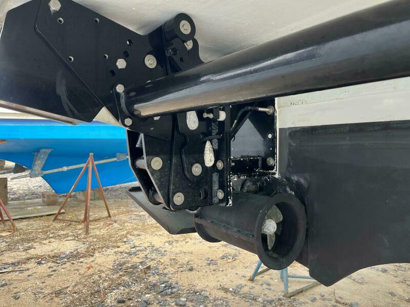 - Bottom paint sanded & fared; epoxy coating applied where gelcoat was exposed; bottom painted with antifouling (12/23)