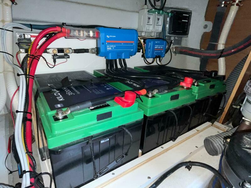 - 3 x KiloVault HLX 12V Lithium House Batteries (900AH) in custom trays, starboard cockpit locker